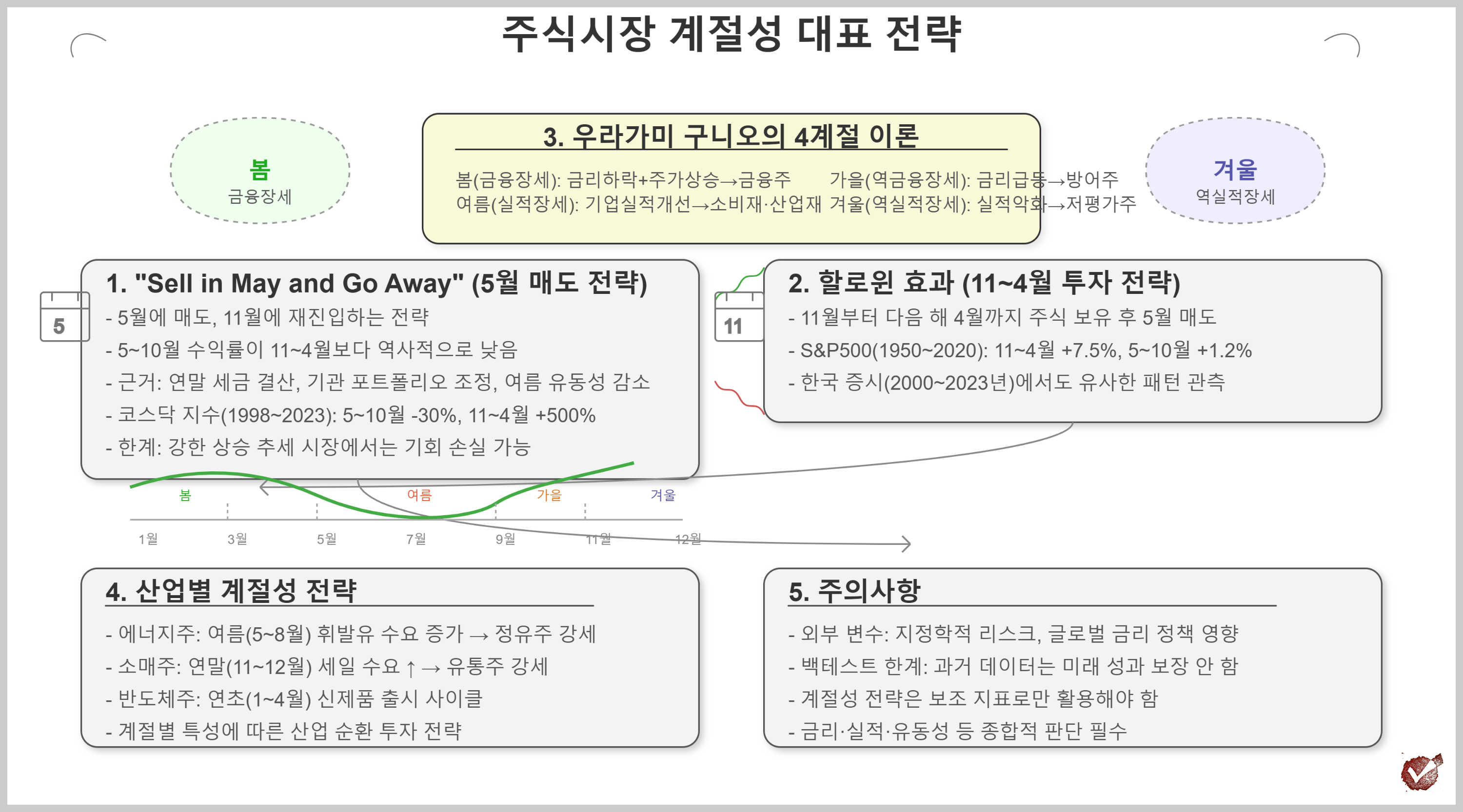 주식시장 계절성 대표 전략(Designed by Felo.ai)