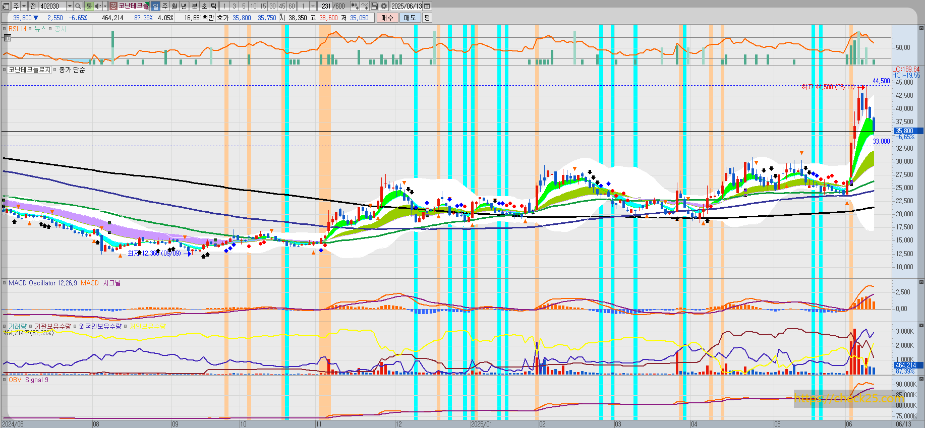 - 기준 범위: 고점 44,300원→저점 35,450원